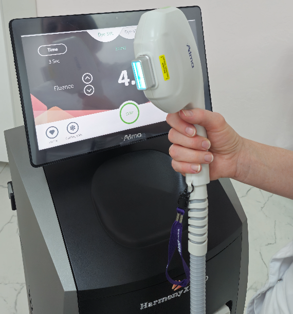 В медицинском центре «Золотое Сечение» в Витебске мы используем новейшее поколение аппарата Harmony XL Pro с инновационной технологией Dye-VL, которая обеспечивает беспрецедентную точность и комфорт во время процедуры.